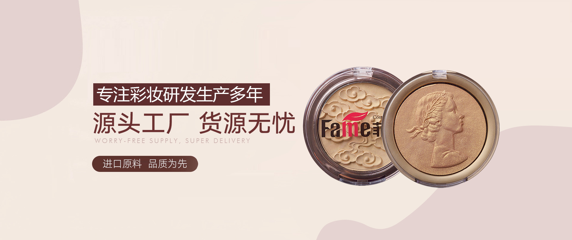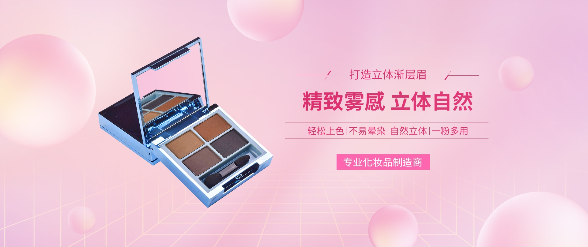 主要生產(chǎn)各種工藝粉類(lèi)產(chǎn)品,如:眼影、粉餅、腮紅、液態(tài)粉、3D硅膠粉、漸變系列等。